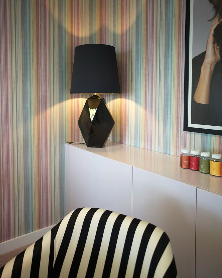 Partimos da essência da Vanessa para criar um quarto sereno e autoral. Base neutra, texturas aconchegantes e um detalhe azul profundo que eleva o espaço. Um ambiente pensado para desacelerar, respirar e pertencer.
