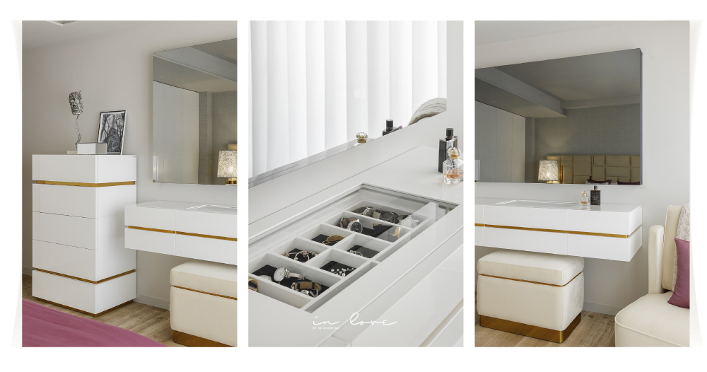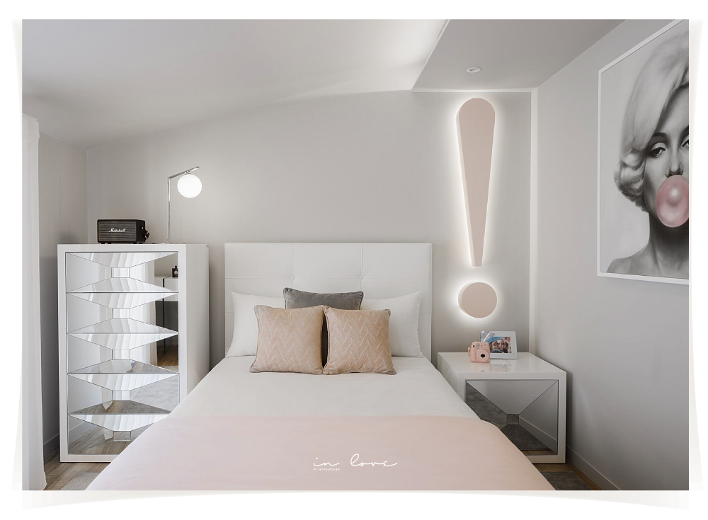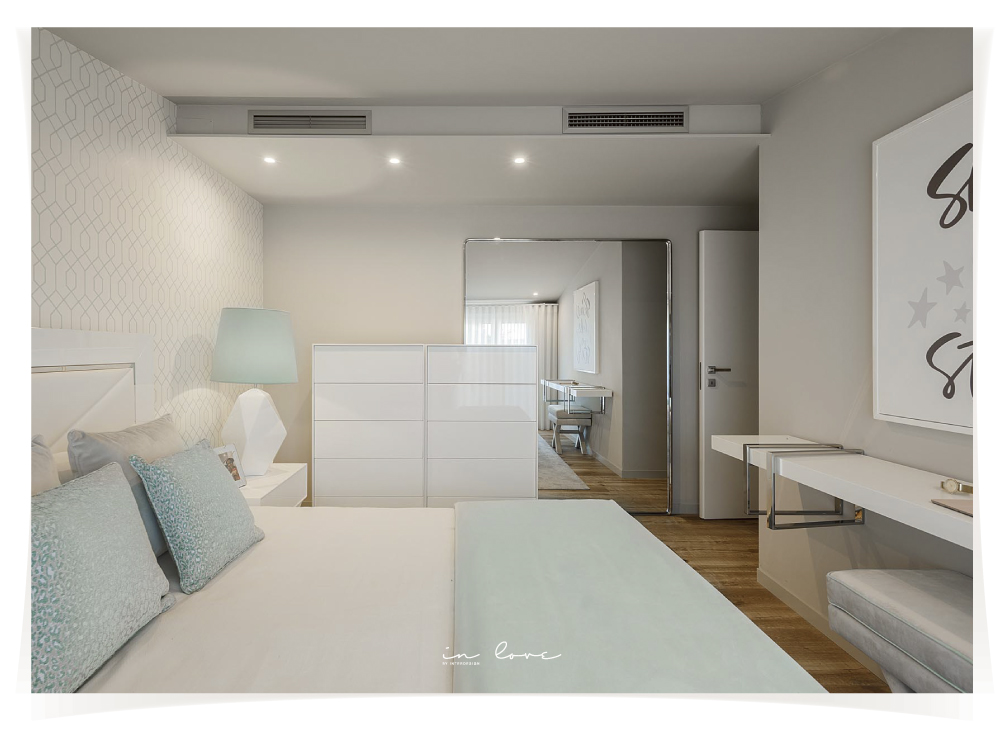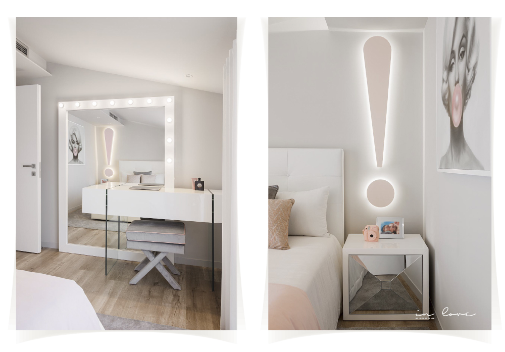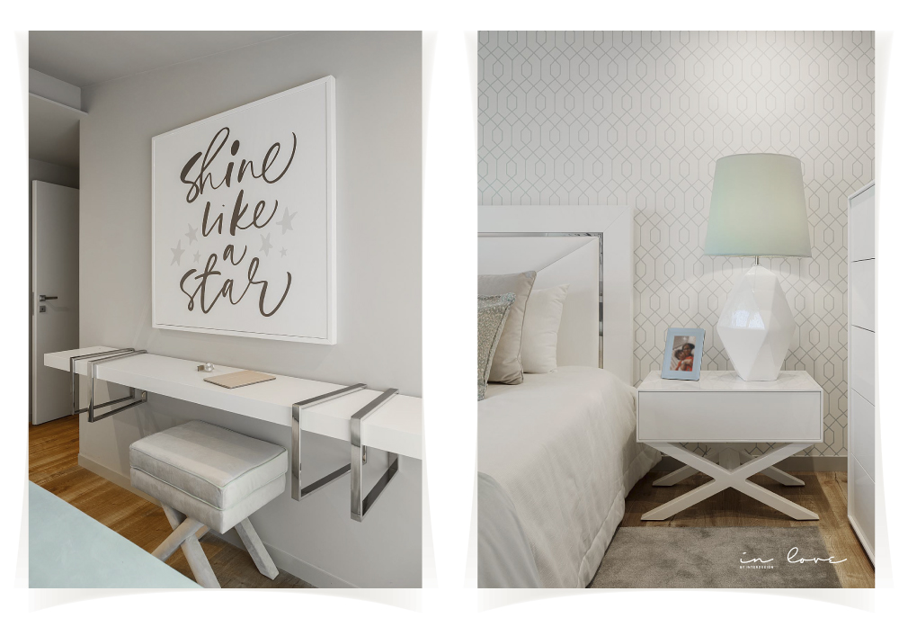 Num ambiente clean, cheio de luz onde os tons claros predominam, destaca-se o design atual de cada espaço, com traços diferentes para cada uma das personalidades. Os apontamentos de decoração como os candeeiros e os quadros na parede, dão vida aos quartos e tornam-nos ainda mais acolhedores.