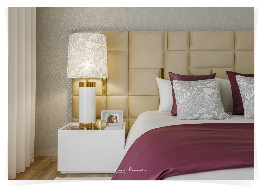 Com uma família numerosa a vida é sempre uma aventura, por isso o quarto dos pais tem de ser uma zona de descanso e tranquilidade para repor energias. Os tons neutros predominam em todo o espaço, que ganha vivacidade com os apontamentos bordeaux.